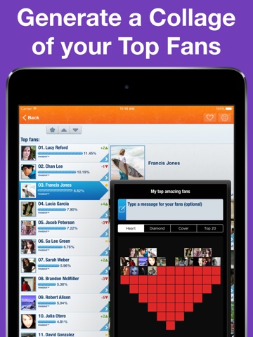 • MY TOP FANS: find out who loves you on Facebook. Analyzing your Facebook profile, this feature reveals the identity of your fans and their level of interest in you. (New extra feature)