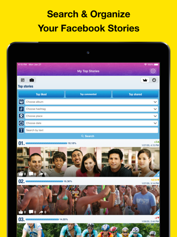 • RANKING CHART: browse your best stories from Facebook, tracking their movements in the chart.