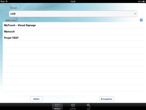 MYTOUCH est un nouveau concept de communication visuelle. Avec cette application vous pourrez gérer le contenu de vos écrans TV, ordinateur, beamer, etc... D’un simple clic, vous pouvez piloter les écrans qui seront connectés au même réseau, faire une présentation de votre entreprise, passer un film en HD, montrer un site internet…