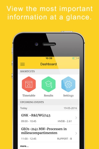 Checking your personal timetable, study results and useful quick links of Utrecht University has never been this easy! Two taps are needed to examine all the information you need.