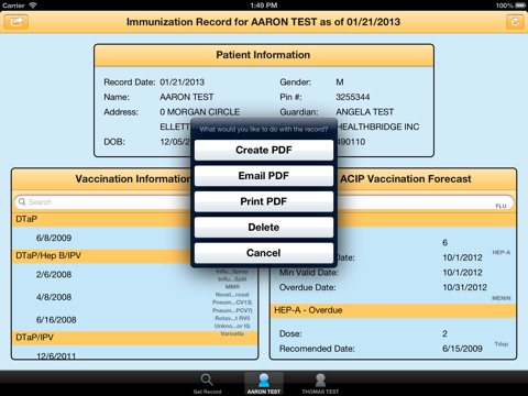 viewed and saved. This includes an option to print and save the Official Immunization
