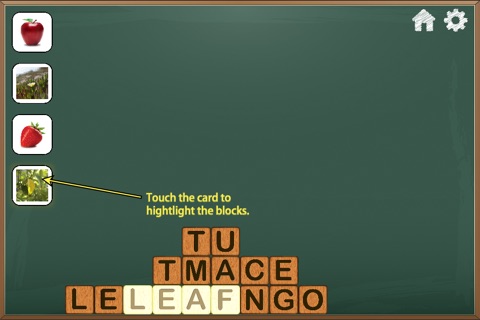 The Blocks game builds towers of letters - you find the words hidden within and find the words for the cards shown.