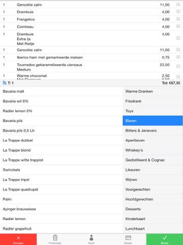 - Apart kelner scherm waarin een kelner een tafel kan openen, arrangementen