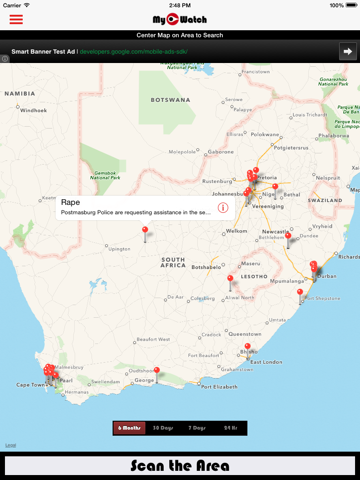 MyWatch allows users to report both crimes and incidents in their areas, and then for other users to search areas and view reports of these crimes.