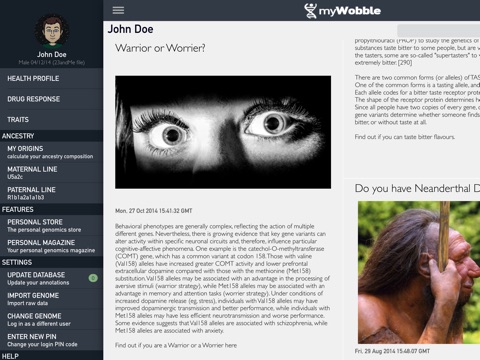 - myWobble connects you to published data for any genetic variation in your data file that is linked to published information- including ancestry, health profile, potential resistance or hypersensitivity to certain marketed drugs, and traits predicting certain physical features.