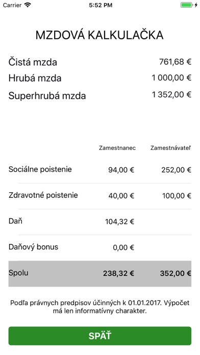 Aplikácia Mzdová kalkulačka vypočítava čistú mzdu plynúcu zo mzdy z trvalého pracovného pomeru. Kalkulačka z hrubej mzdy vypočítava čistú mzdu, superhrubú mzdu vrátane odvodov na zdravotné poistenie, sociálne positenie a daň.