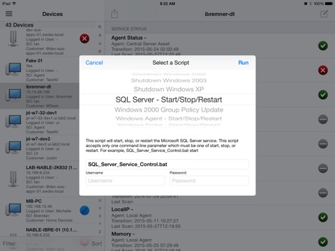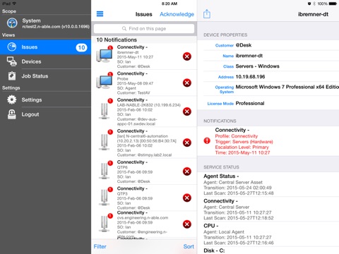 N-central Mobile lets you acknowledge issues, add notes to devices, view the details of devices and services, and see the status of automation tasks, scripts and software pushes that N-central is running on your behalf.