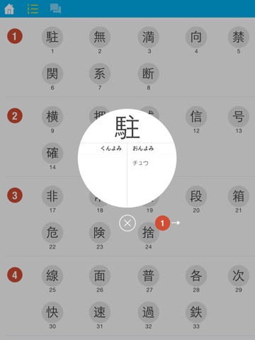 - Kanjis are grouped by grade and JLPT and subdivided into sets of 42 for easy practice.