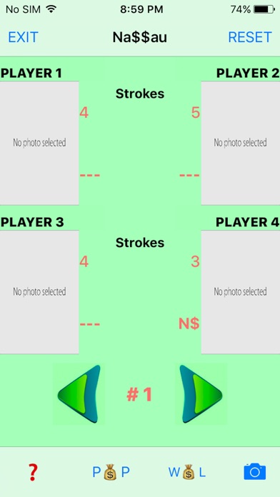 At the end of the match, each player settles up based on the number of Nassau(s) they have. In this App, one Nassau will equate to $1. Most Nassau matches are played at $2 or $5 per Nassau bet - so multiply by 2 or by 5 when settling up.