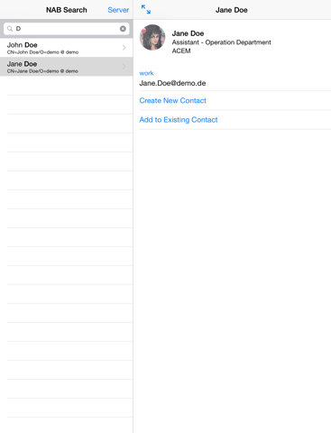 Mobile access to the Address Book of your IBM Lotus Domino Server to search for a person.
