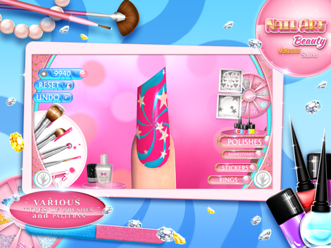 * Download our nail fashion games now and start playing with tons of nail painting colors, predesigned patterns, girly stickers, glittering rhinestones and various 3D fashion nails decorations, all packed in a gigantic nail kit. Get Nail Art Beauty Makeover Salon app free of charge and gain access to the most creative manicure salon nail design ideas, with which you’ll design beautiful nail art step by step – exclusively in these free nail painting games for girls!