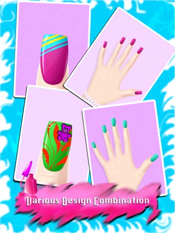 Design and create your own manicure in Nail Art Design Salon. Try on different polish, paint design, and decorate your nail for a unique look. Choose from tons of different polish color, add on design, tips, and sparkling gem, and rhinestones.