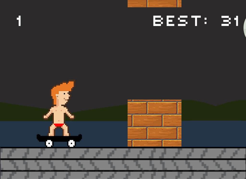 Tap on your device to make Bro ollie over the jumps. Keep on avoiding obstacles to level up and lose items of clothing!
