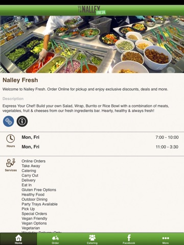Express Your Chef! Build your own Salad, Wrap, Burrito or Rice Bowl with a combination of meats, vegetables, fruit & cheeses from our fresh ingredients bar. Hearty, healthy & always fresh!