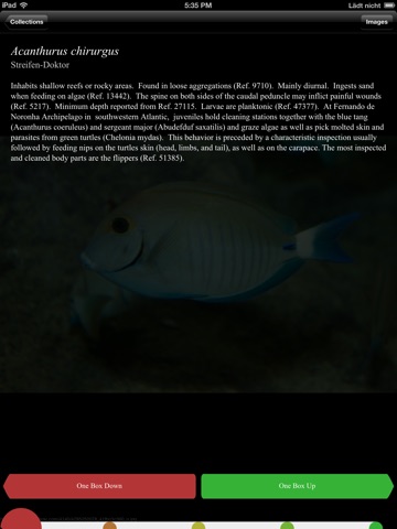 The learning algorithm is based on the 5 boxes Leitner system. After the download all items are in the first box. Using the the green button moves them to the next box. Use the green button when you successfully recognize one item. If you hit the red button the item goes back into the previous box. Items come up randomly and the probability for an item to be shown declines with the higher boxes.