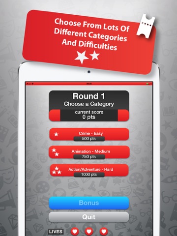 Name the Movie Quiz adds an element of strategy to the quizzing goodness by allowing you to use Bonus Items such as multiplier freeze or time extension to boost your chances of gaining a top score or maybe you want to use the invulnerable power to help you survive that difficult category. What you use and when you use it is completely up to you, so make sure you use them wisely!