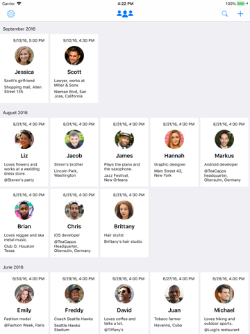 - Add multiple names in one step (very useful if you meet a group of people).