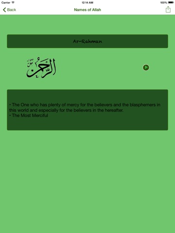 ▪ Read the English translation of Meaning of Quran in Description for each name.