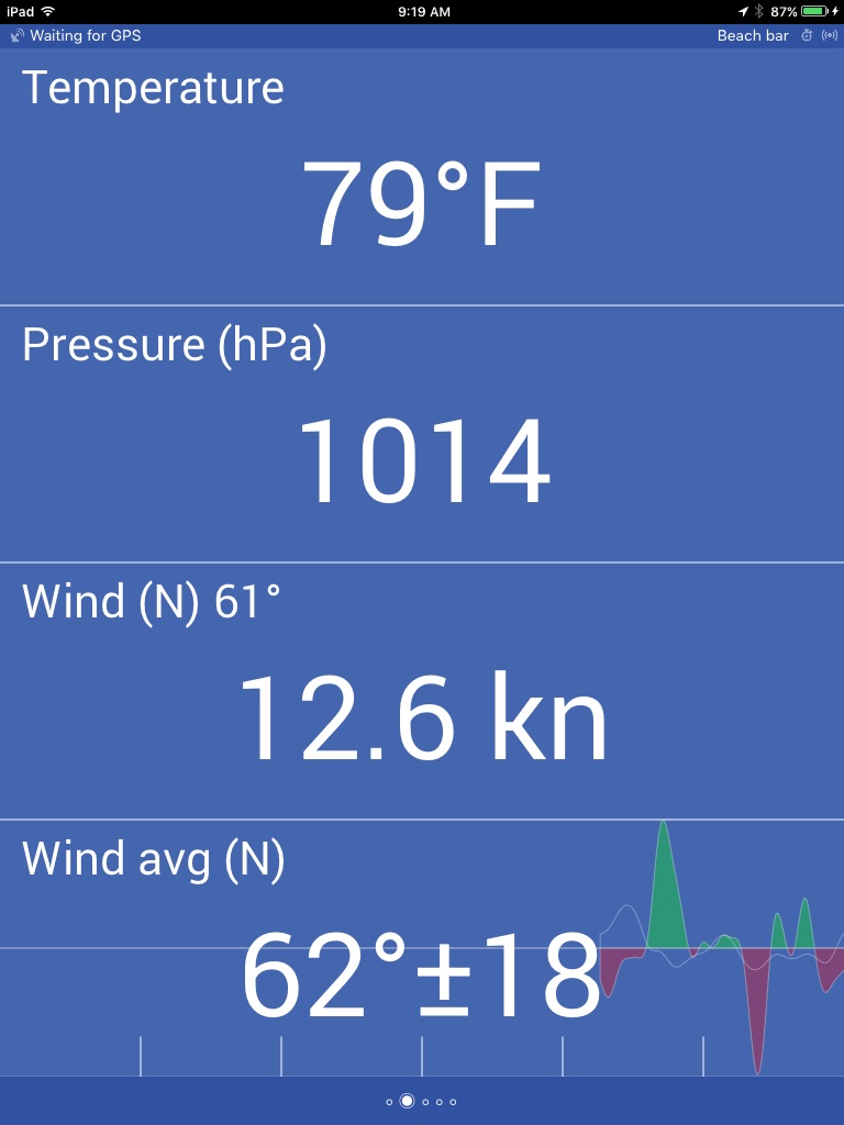 Application reads real time wind, pressure and temperature information from Nanny Cay Weather Station.