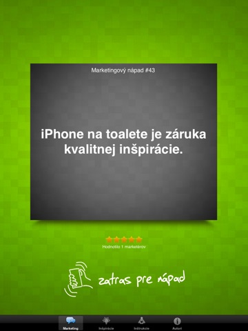 Obsahuje vyše 300 marketingových nápadov a inšpirácií z tradičnej aj digitálnej oblasti. Stačí zatriasť telefónom alebo tabletom a aplikácia zobrazí ďalší nápad (Insider tip: okrem zatrasenia funguje aj na zúfalé buchnutie o hlavu alebo hodenie nápadu kolegovi).