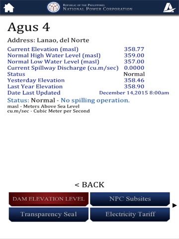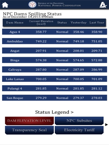 Dam Elevation Levels and Emergency Spillage Notifications.