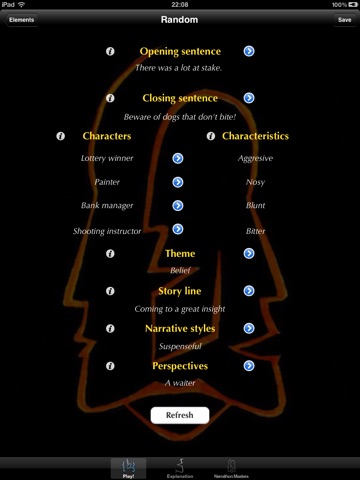 Before we developed this App, we let thousands of people try out storytelling with the Narrathon elements - from those who had hardly ever told stories before to professional writers. Their response was just incredible. Nearly every one of them was amazed how easy exciting stories came to mind. When it comes to inspiring people to tell or write a great story, Narrathon is THE tool to have.