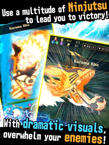 • Form your very own ninja team with over 100 of your favorite NARUTO heroes, each with their own unique attacks and skills!