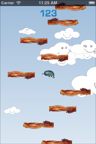 Tilt your phone left or right to help Narwhal scale the bacon platforms.