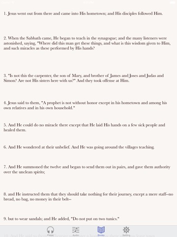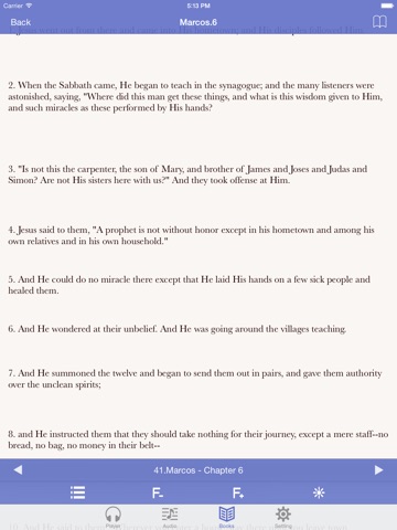 This program allows you to listen the entire Old Testament and New Testament in audio form. All the audio is embedded in the software, so you can listen the Holy Bible at any time, without the need for a wireless connection.
