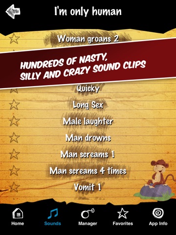Nasty, funny and silly sound clips are always at your fingertips! You’ll be the star of every party or break-time!