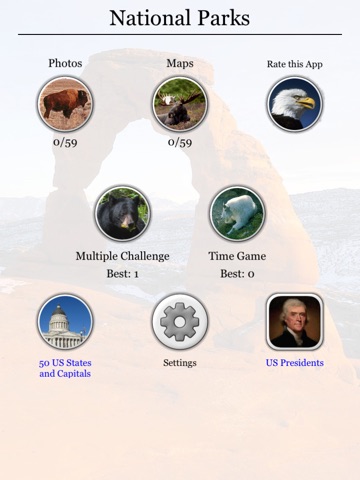 The app is translated into 9 languages, including English, Spanish, French, and many others. So you can learn the names of the national parks in any of them.