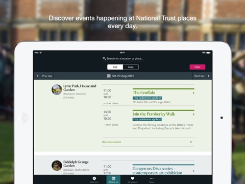 In Verbindung mit dem Reiseführer, ist dieses App unbedingt zu empfehlen. Vor der Englandreise sollte man sich eine Mitgliedschaft online oder vor Ort sichern. Dieser Verein konzentriert sich stark auf Gärten und Landschaften, nixht auf Häuser.