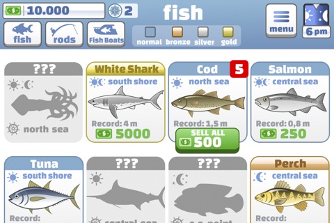 - 13 fishing rods with different attributes. Find amazing Barracudas, Salmons, Sharks and deep see creatures!