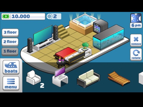 - More than 100 furniture items to customize your boat - including a fish tank!