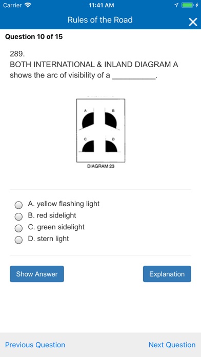 Created by Capt. Bill Rivera, Director of the Nautical School of Maritime Licensing, this program is a must for any student about to take the nautical rules of the road examination for their Coast Guard license. This app contains over 1300 rules of the road questions thats simulate the exam. A 90% passing grade is required and the program tracks your progress, provides instant feedback when a question is answered incorrectly and displays an explanation to help the student understand why the question is incorrect. Do not attempt to take the rules of the road examination from the Coast Guard or anywhere without first working with this program. Once you are consistently passing the sample examinations that you select, then you will be ready to take the real examination and pass it. You can test yourself in learning mode or Flash card mode. This is the Best program and stress free way to help you learn the Rules of the Road while and test yourself while youre learning.