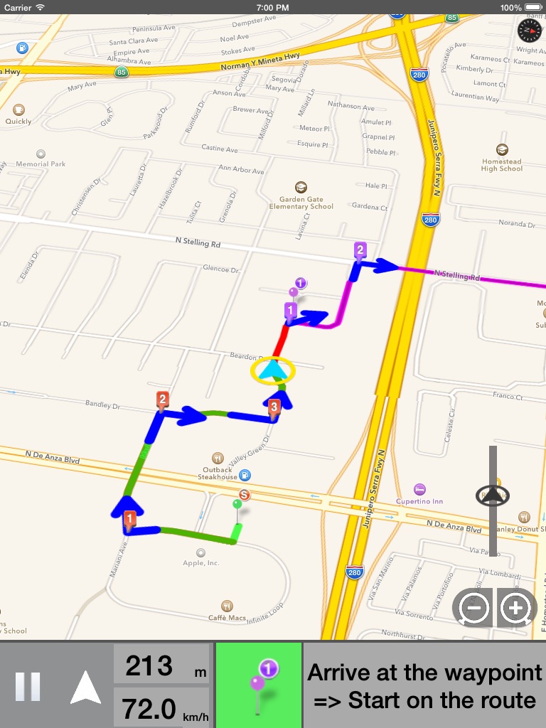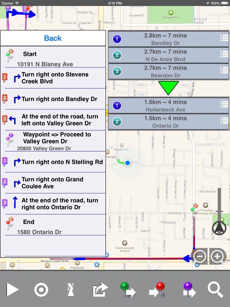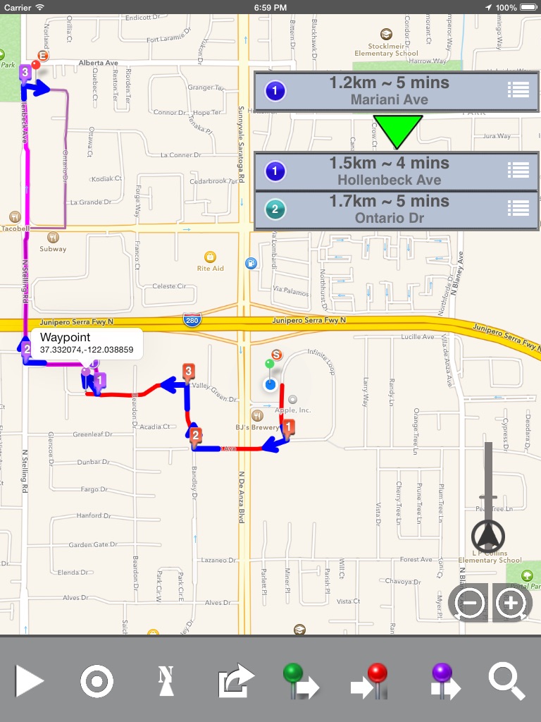 DirectionsX can search and display the route and instructions ,and provide the simple navigation. Searched route is available for driving, walk . Moved track can be displayed. Also the waypoints can be defined up to 8 points.