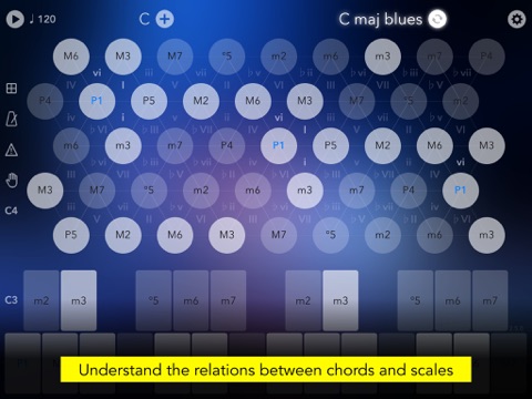 "Find using the harmonic grid more intuitive than a piano keyboard, being able to press in the middle of three circles to get major and minor chords is genius. Experimenting with chord patterns and having the chord name at the top and the root and other keys displayed on the keyboard, is helping me get my head around more complex chords." - mister-rz