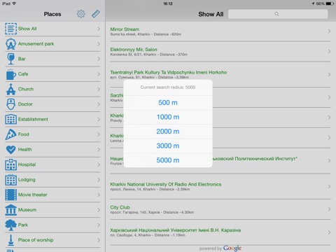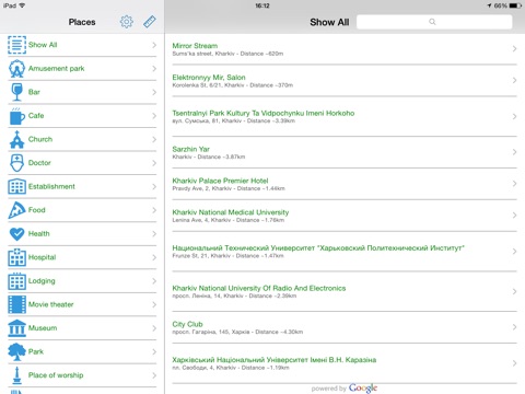 3. Browse list of nearest places,