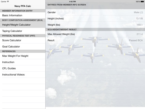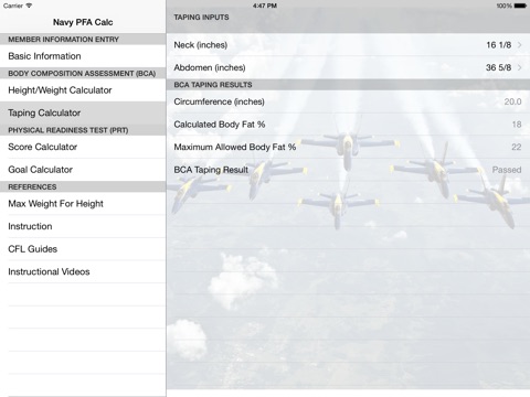 This app has it all. Im not sure why people buy that other navy app over this one. It doesnt close out (ios8). Easy to use. Comes with pdf guides that can be transferred and downloaded onto other apps to read. Its great and I recommend it to all others that are in the DEP program or are already enlisted. It has standards to choose from (maximum, outstanding, excellent, great, and satisfactory). That way you can see if you will barely pass or if you want to go all out and excellent at all the test.
