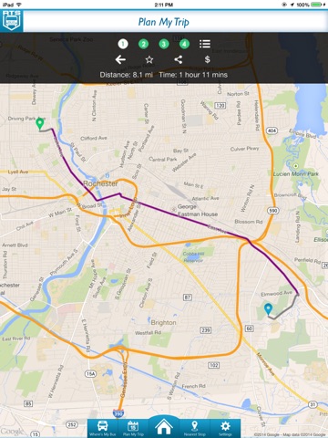 Use the trip-planning tools to find the best way to get to your destination through planned schedules. You can even get walking directions to the nearest stop, your total trip time and distance. (Schedule data on the trip planner consists of scheduled data, and is not real-time information. Please use the Wheres My Bus? feature for real-time arrival information.)