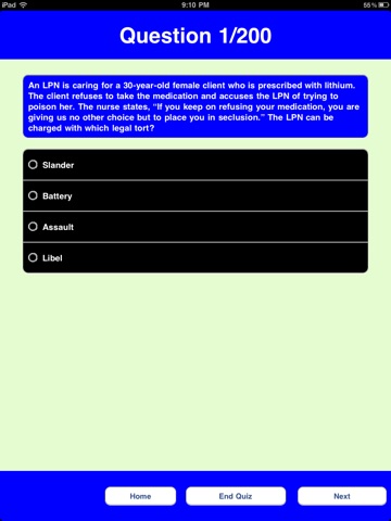 Over 200 NCLEX-LPN review questions are included in the test prep quiz. Topics cover management care, safety, basic care, health promotion, physiological adaptation, pyschosocial, and reduction of risk potential.