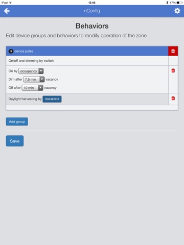 Completing simple nLight® device configuration has never been easier. The Acuity Controls nLight Configuration application partners with a nLight Bluetooth Low Energy (BLE) device (model: nIO BT) for simple system configuration changes.