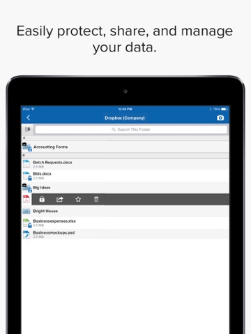 e-Share lets you protect your personal and business cloud data with enterprise level encryption. Securely share and manage your files with advanced auditing, remote wipe capabilities, and access control.
