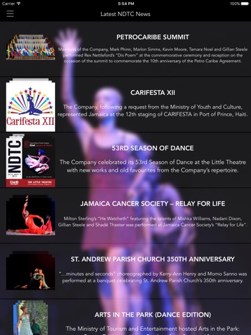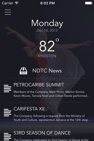 The National Dance Theatre Company (NDTC) wanted a mobile app that would keep its followers up to date with the latest news within the organization, upcoming shows and all of their social media presence consolidated in one place. Each view has a translucent layer that gives a peek into the NDTCs stunning performances and gives a very artistic feel to the application. Check out the features list below: