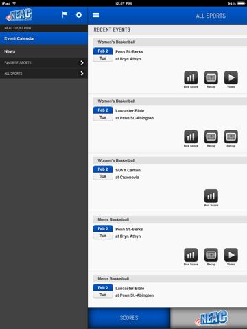 Created by PrestoSports in partnership with the North Eastern Athletic Conference, Front Row gives fans access to score updates, statistics and game recaps.