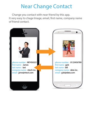 Smart way to exchange contact. When you near friend and you want to exchange contact with your friend. You can use this app for exchange contact with your friend. All data image, email, first name can transfer to your friend.