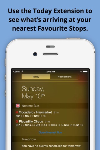 If the stop you use is further from your house, then you can mark it as a favourite. Favourites are displayed if you are within a mile and a half of them (2km). You can also see the nearest Favourites in the Today Widget!