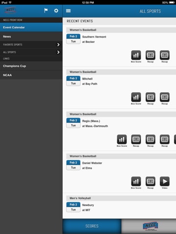 Created by PrestoSports in partnership with the New England Collegiate Conference, Front Row gives fans access to score updates, statistics and game recaps.