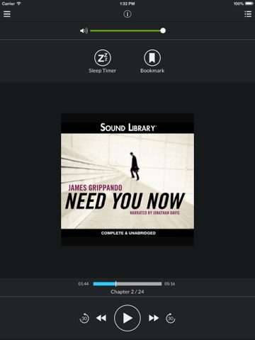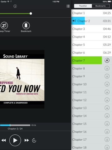 Download your book directly over Wi-Fi or cellular network and begin listening as soon as the first track downloads. The Downpour.com powered app features an attractive interface with traditional audio controls in addition to sleep timer, bookmarking, and variable track scrubbing.