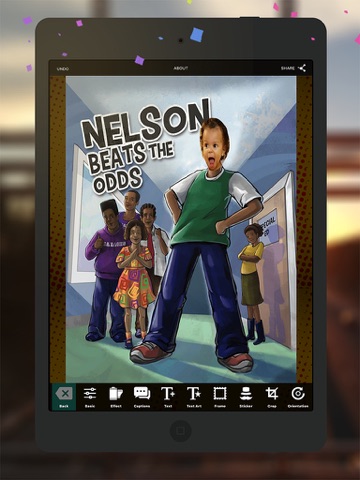 Place yourself in a photo with a friend or your favorite “Nelson Beats The Odds” character! Nelson Beats The Odds Comic Creator is a simple way to inspire the world with your creative photos. First, snap photo with your iOS device or choose a photo from your photo library. Apply stunning filters and photo effects, and an ever growing collection of stickers, comic strips, frames, word bubbles, text art and more.